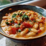 A rich and creamy vegan stew with tomatoes and white beans, packed with flavor and perfect for a hearty meal.