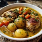 Oh, how I love serving this stew! A big hunk of crusty bread is perfect for soaking up every last drop of that delicious broth. When I’m feeling fancy, I’ll toss together a simple green salad with lemon vinaigrette to balance the richness. My family always fights over who gets to lick the bowl clean!